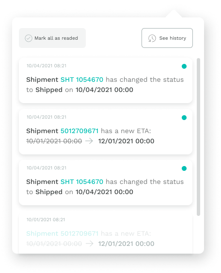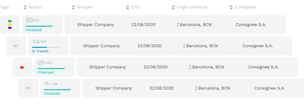 All the shipment info you need. Visualize the status in real time and follow up the progress across the process.