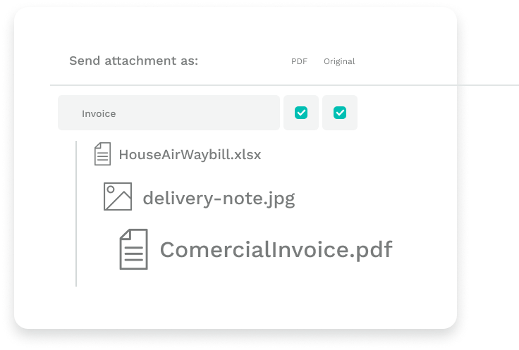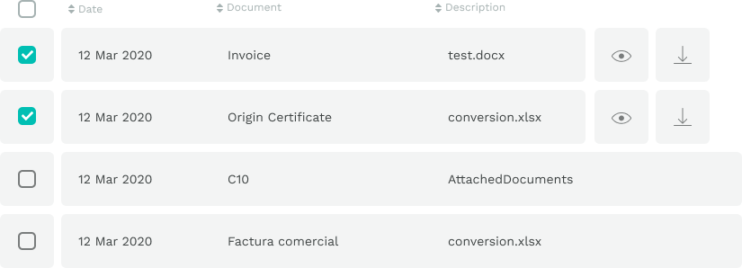 All the documentation in one space. You can display all the documents, manage them, or share them with any stakeholder involved in the shipment.